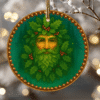 oak king ornament, yule oak king, winter solstice ornament, pagan yule decor, celtic oak king ornament, mystical winter ornament, enchanted forest ornament, magical woodland christmas, folklore christmas ornament, rustic pagan holiday decor, cottagecore holiday ornament, solstice celebration ornament, nature inspired christmas decor, ceramic round christmas ornament, unique holiday keepsake ornament, celtic mythology ornament, spirit of the solstice, enchanted winter decor, celtic yule ornament