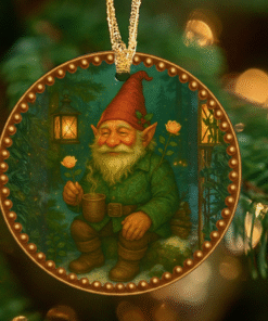 hearth gnome ornament, thistlebeard gnome ornament, cozy yule ornament, guardian of hearth and home, winter gnome christmas ornament, rustic holiday gnome decor, whimsical yule ornament, enchanted forest ornament, cottagecore holiday ornament, folklore christmas ornament, cozy cabin christmas decor, nordic gnome ornament, ceramic round christmas ornament, unique holiday keepsake ornament, magical woodland christmas, yule home protector ornament, festive winter gnome decor, nature inspired christmas ornament, hearth and home holiday ornament